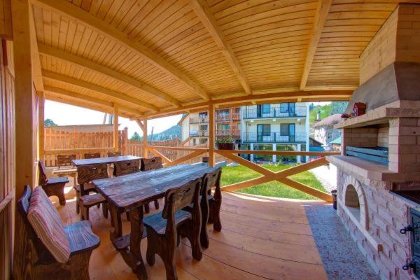 This hotel is located in Bukovel, just 200 metres from 1R ski lift. Free Wi-Fi and free parking are featured at Dolyna Gir Hotel