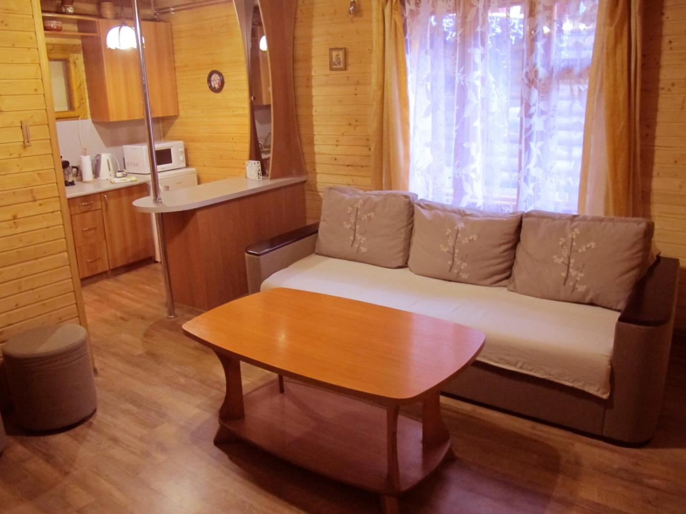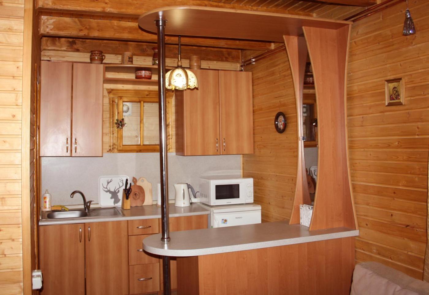 Cottage. This wooden cottage includes 2 bedrooms, a balcony, a private bathroom and a fireplace. A fully equipped kitchen is on site. ;