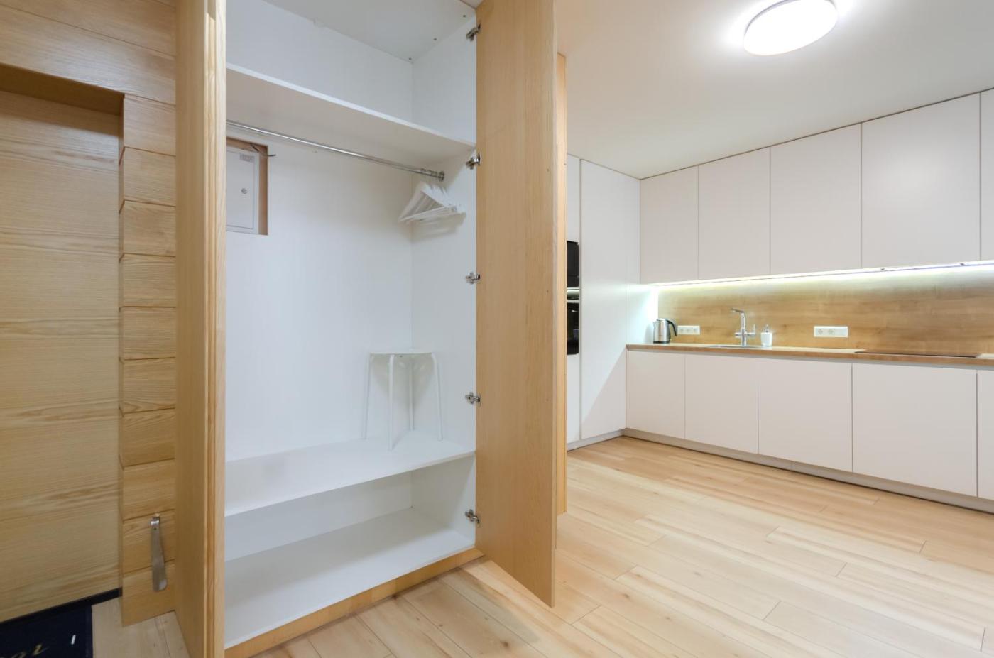 One-Bedroom Apartment. This apartment consists of 1 living room, 1 separate bedroom and 1 bathroom with a bath and free toiletries. Guests can make meals in the kitchen that is equipped with a stovetop, a refrigerator, a dishwasher and kitchenware. The air-conditioned apartment provides a flat-screen TV, a washing machine, a dining area, a wardrobe as well as city views. The unit offers 3 beds. ;