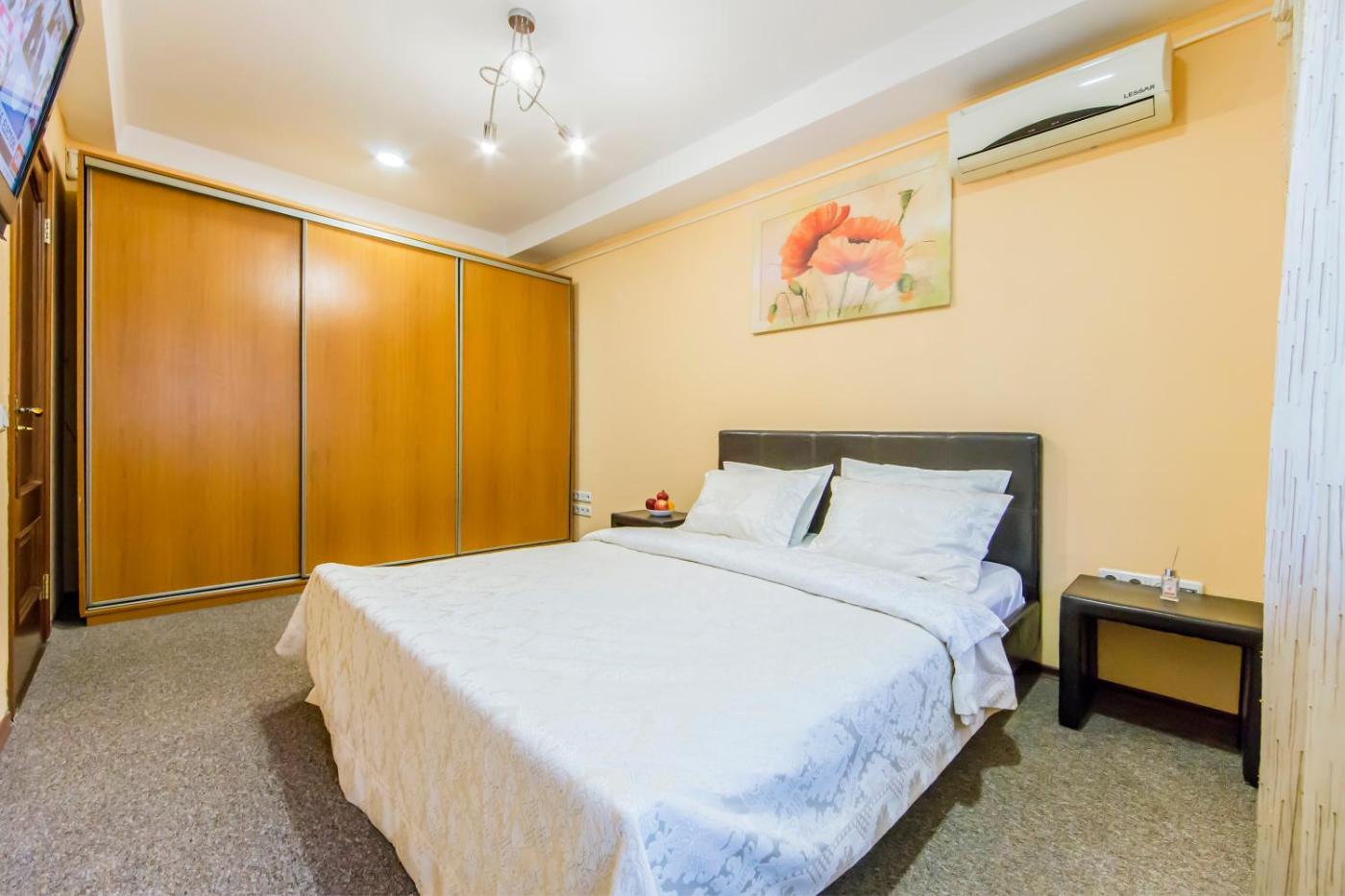 One-Bedroom Apartment. This air-conditioned apartment is comprised of 1 living room, 1 separate bedroom and 1 bathroom with a bath. The well-equipped kitchen features a stovetop, a refrigerator, kitchenware and an oven. The apartment offers a washing machine, a tea and coffee maker, a seating area, a flat-screen TV with cable channels, as well as city views. The unit offers 3 beds.