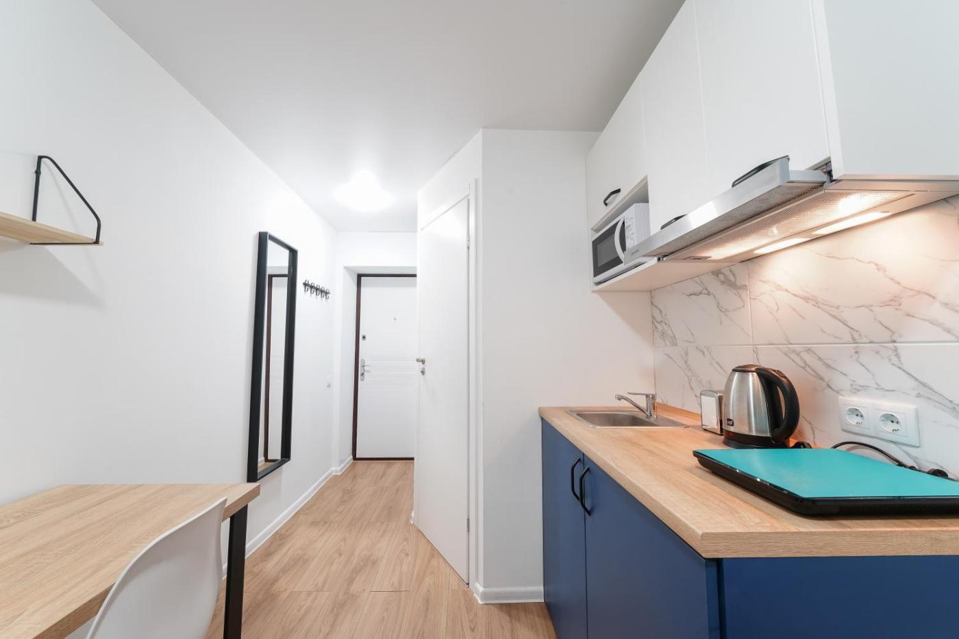 Studio Apartment. The air-conditioned apartment features 1 bedroom and 1 bathroom with a shower and a hairdryer. In the well-fitted kitchen, guests will find a stovetop, a refrigerator, kitchenware and a microwave. The apartment offers a flat-screen TV, a washing machine, a wardrobe, an electric kettle as well as a quiet street view. The unit offers 1 bed. ;