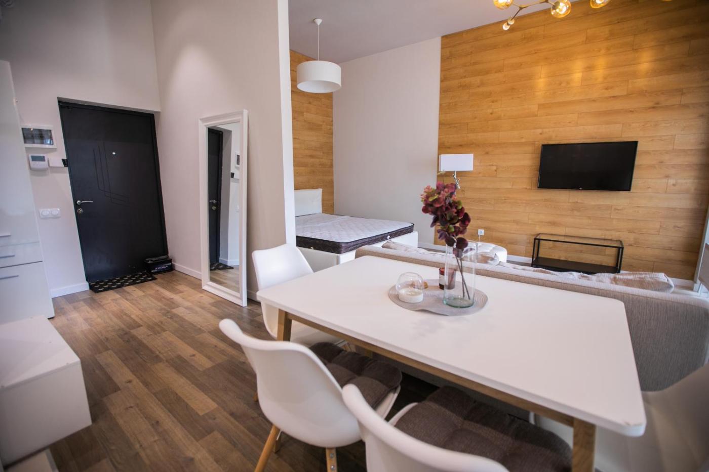 One-Bedroom Apartment. Boasting a private entrance, this air-conditioned apartment features a kitchen, 1 bedroom and 1 bathroom with a shower and a hairdryer. In the well-fitted kitchen, guests will find a refrigerator, a dishwasher, kitchenware and a microwave. The apartment has a washing machine, soundproof walls, a minibar as well as a terrace with mountain views. The unit has 2 beds.