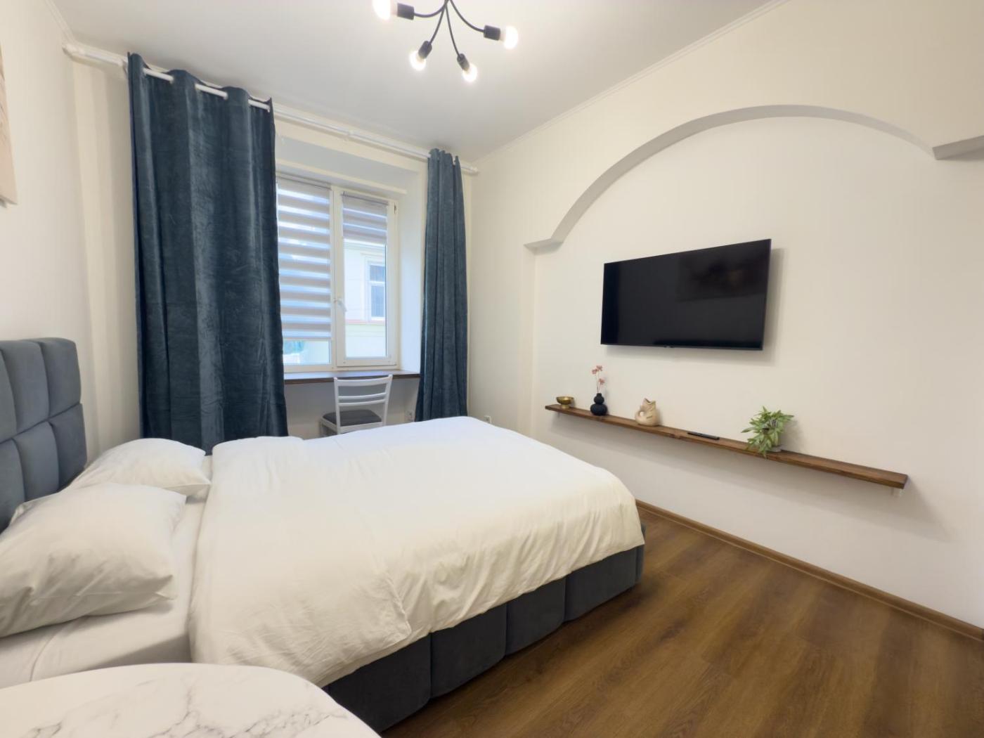 One-Bedroom Apartment. The fully equipped kitchen features a stovetop, a refrigerator, a dishwasher and kitchenware. The air-conditioned apartment provides a flat-screen TV with cable channels, a washing machine, a tea and coffee maker, a wardrobe as well as city views. The unit offers 1 bed.