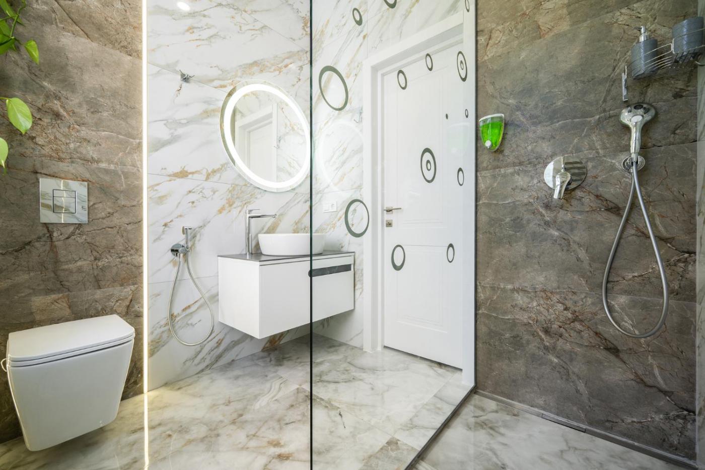 Two-Bedroom Deluxe Apartment with Balcony. Boasting a private entrance, this air-conditioned apartment includes a kitchen, 2 bedrooms and 1 bathroom with a walk-in shower and a hairdryer. In the well-fitted kitchen, guests will find a stovetop, a refrigerator, kitchenware and a microwave. The apartment offers a washing machine, soundproof walls, a tea and coffee maker, a flat-screen TV with satellite channels, as well as city views. The unit has 3 beds. ;
